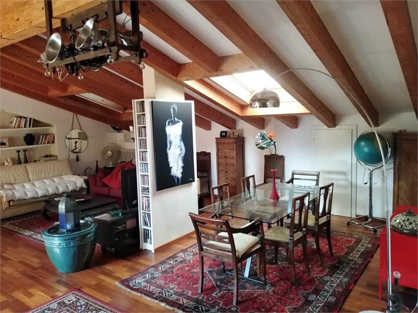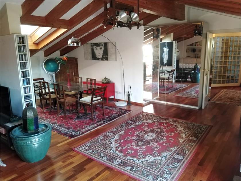In centralissimo palazzo d'epoca caratterizzato da importanti elementi architettonici, proponiamo signorile attico mansardato di grande metratura.