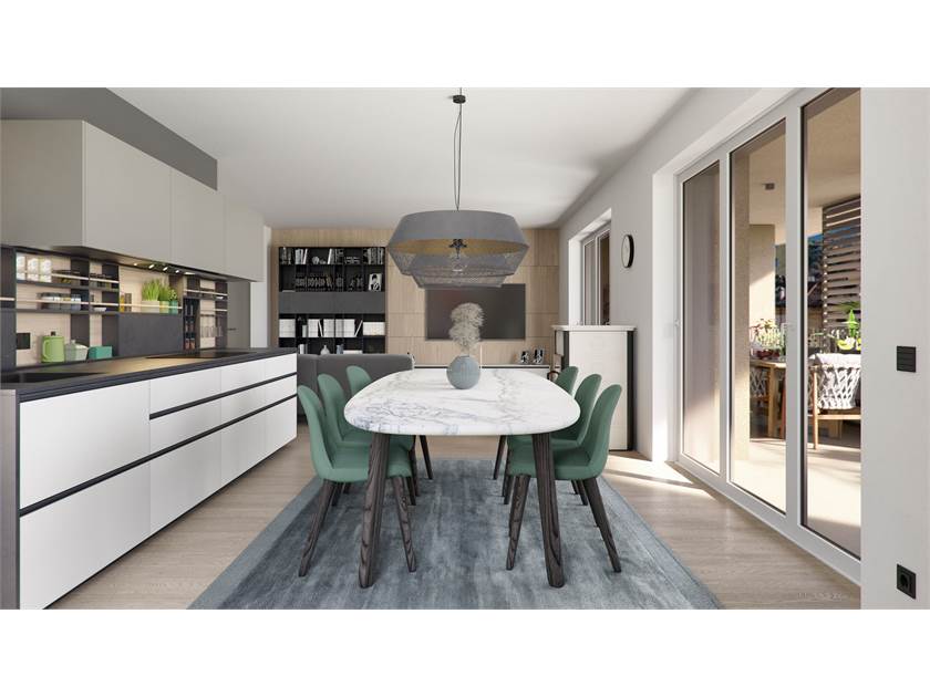 Rovereto ubicazione centralissima ed esclusiva, in costruenda palazzina, proponiamo in vendita appartamento bilocale posto al piano primo composto da: ingresso, soggiorno con angolo cottura, bagno, camera matrimoniale e terrazzo. Cantina e garage a parte.