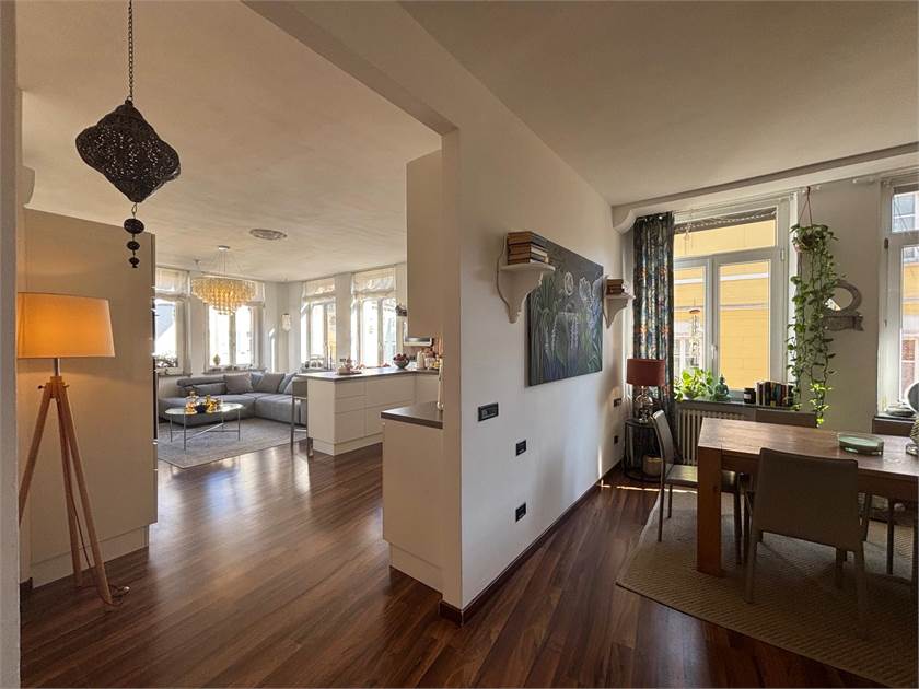 In centralissimo palazzo d'epoca caratterizzato da importanti elementi architettonici, proponiamo signorile appartamento padronale di grande metratura.